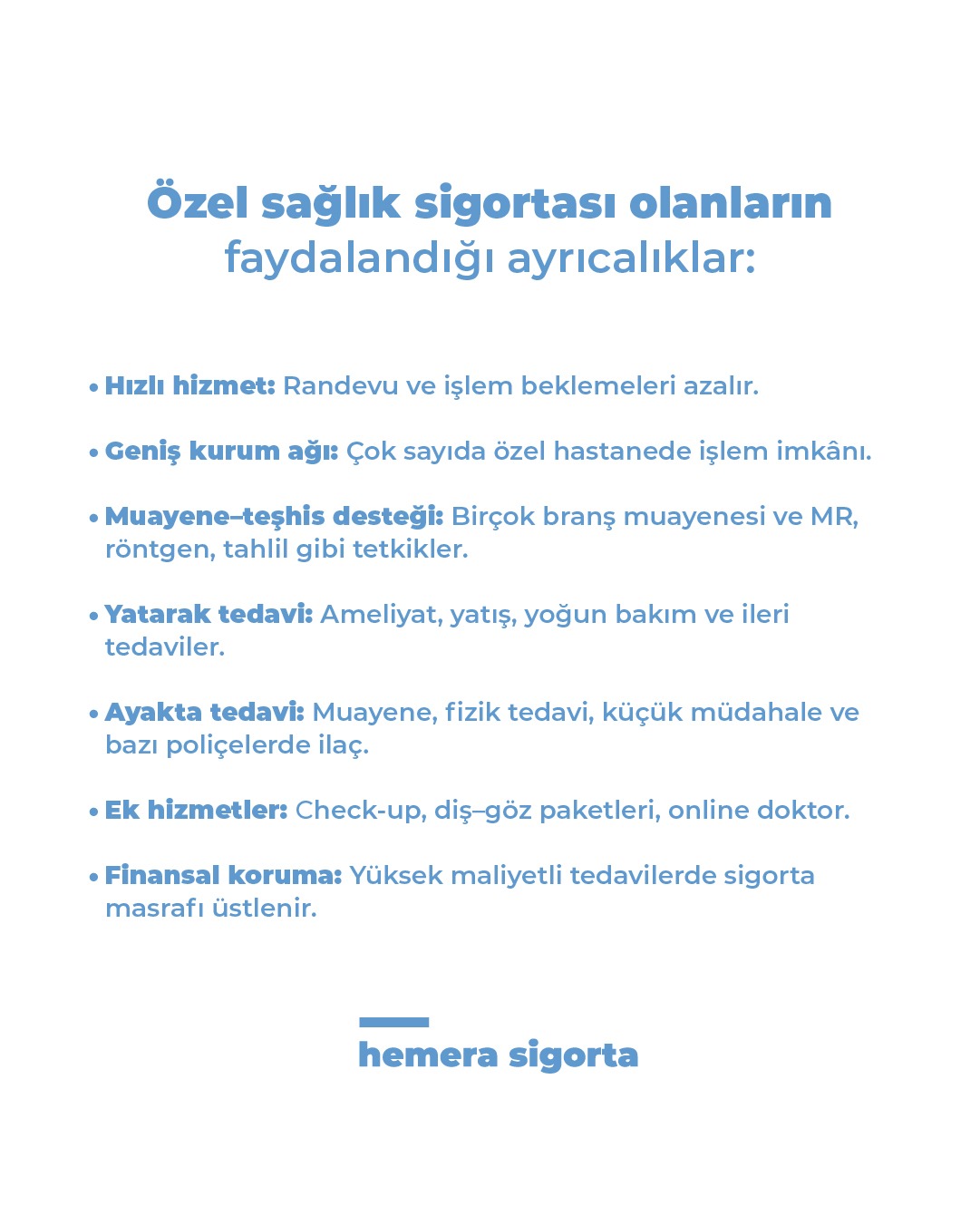 Hemera Sigorta olarak sadece poliçe sunan değil; danışmanlık yapan, riskleri önceden gören ve hasar anında hızlı çözüm üreten bir anlayışla çalışıyoruz. Şeffaflık, güven ve sürdürülebilir hizmet yaklaşımı işimizin temelini oluşturur.